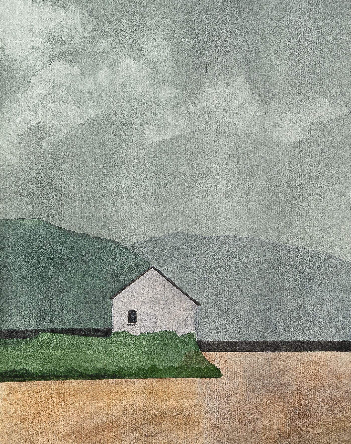 Watercolour and Gouache Work Portfolio section includes painting pages (that follow) containing examples of my watercolour and gouache work finished over the past decade or so. This work is on Arches Paper or occasionally, ‘Langton’ paper. The paintings are based on photographs taken in Ireland and abroad. While I have been using both media for many years, in recent times I paint using only watercolour on Arches’ paper. An example of such a watercolour is shown below.
